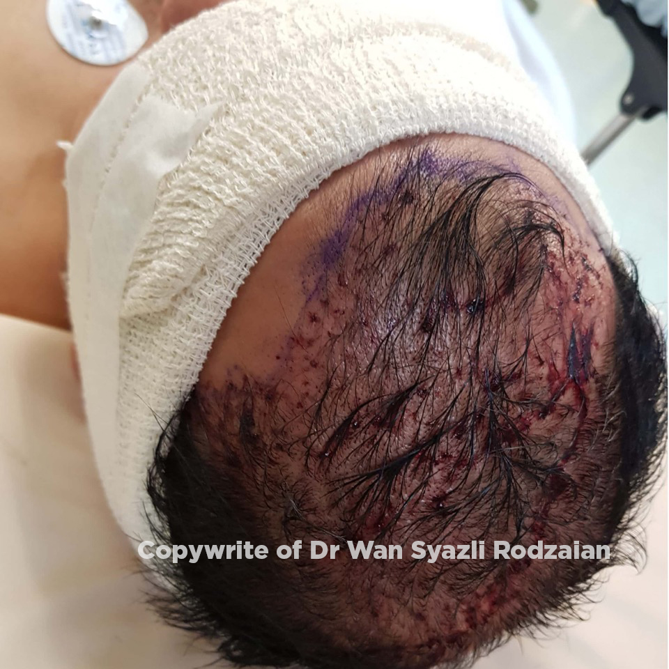 - After completion of the procedure, the transplanted hair area will be dressed and bandage applied to the head overnight